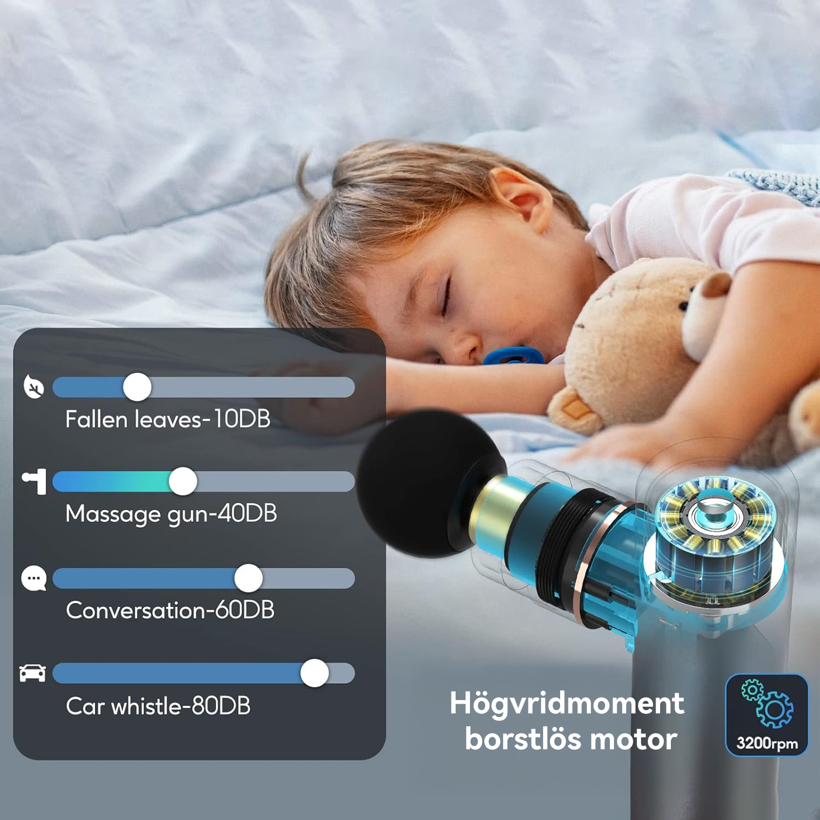- Djup muskelavslappning – Vibrationer på 1200–2800 varv/min lindrar snabbt muskelvärk och stelhet.